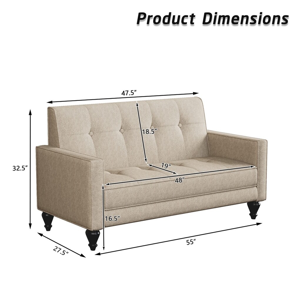 - ?【Comfortable Fabric Love Seat】 Our Sofa Couches is made of high-quality velvet, which is soft and skin-friendly and not prone to wrinkles.Recline and lounge as you watch a movie, read a book or take a nap on this stylish futon couch bed