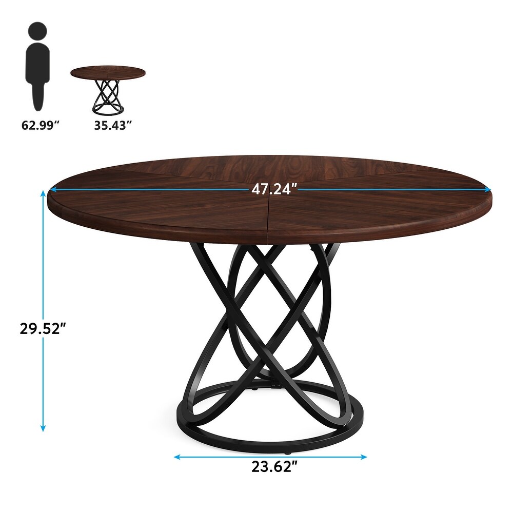 - OUND DINING TABLE FOR 4: Featuring with 47’’ (Dia) tabletop, Tribesigns dining table is spacious enough for 4 people to seat comfortably to enjoy your family deal time or chat around the table. The round corner design with smaller footprint makes it fit any compact space.