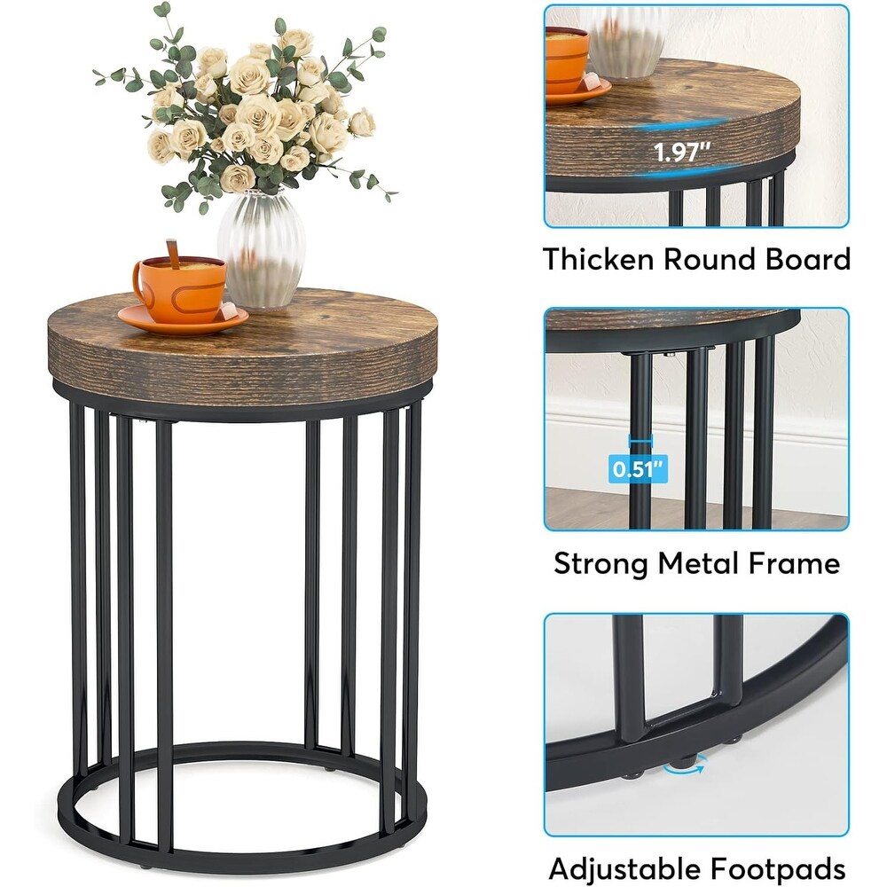 ĄžMinimalist Artwork MasterpieceĄżEnhance your modern or industrial aesthetic with this round side table. The metal accent piece sports a metal frame and wood topŁŹ boasting a beautiful rustic brown wooden board. With a diameter of 17.7 inches and standing 23.6 inches tallŁŹ it is an embodiment of minimalistic charm.