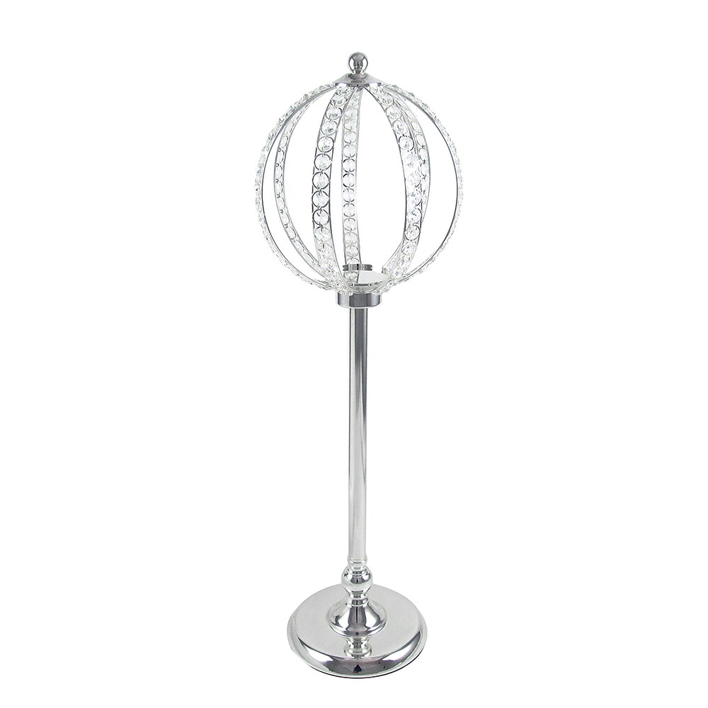 This luxurious, large crystal bead centerpiece decor riser with stand elevates any space with a glam extravagant feel. Features clear cut faceted crystal beads all throughout the main piece, plus a smooth and sturdy chrome stand for added elegance and height. Also includes a round metal plate on the inside of the main piece for easy display. Place candle lights or floral decor inside, or use solo as a bold extra large standout decor piece. Can be assembled and disassembled easily for convenience. Grandiose and timeless for your home or event design!