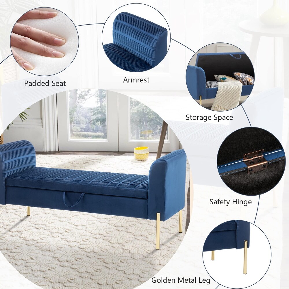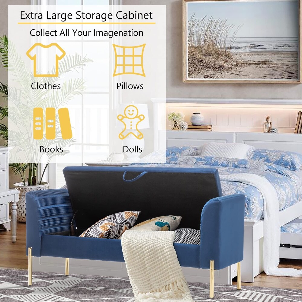- 【Stylish Design】This storage bench combines with modern soft velvet materials and golden metal legs and comfort suits any home decor. And the metal legs has strong load-bearing capacity and provides strong support, which will make you more comfortable and at ease. It’s the perfect way to add traditional elegance to your living room.